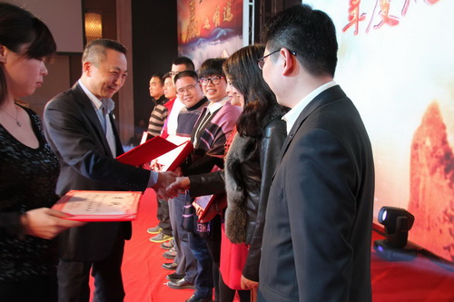 会上,周俊杰总经理首先对全体员工的辛勤拼搏以及家属的默默支持致以衷心的感谢。他在发言中指出,“2014年是不平凡的一年,是我们思考、反思未来发展方向和战略的一年。新的一年2015年是公司二次创业、再腾飞的一年。我们的目标是成为一家有梦想、有担当、有情怀的卓越企业,赢之有道。为此,我们一是要在保持快速发展,为客户、股东、社会创造价值的同时,始终坚持公司的核心价值观——员工、产品、责任、利益(简称“精诚仁和”):为员工创造发展的平台,力求让每位员工实现自己的人生价值;持续开展科技创新研究,提升产品质量;自希望小学,“和黄书屋”公益项目后,要始终坚持开展志愿者活动,坚持发布社会责任报告,为社会提供正能量。二是要实现自有产品和代理产品“两条腿走路”,形成公司的核心竞争力,在未来实现多业态发展。三是要合规经营,全面建设和完善合规体系。第四,我们要将“二次创业”的意识根植入和黄人的心中,以新的模式、新的体系,实现上海和黄药业的二次腾飞。